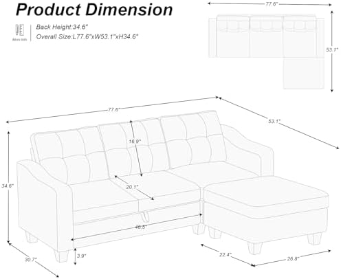 Effortless Assembly, Instant Relaxation Bring Belffin home and get the perfect balance between comfort and modern style. This small sectional couch offers exceptional durability for casual living rooms and family rooms, upholstered in soft 100% polyester velvet fabric with curved arms that create a sumptuous and current aura. This classic look never goes out of style, so you'll be sure to enjoy this couch for many years.