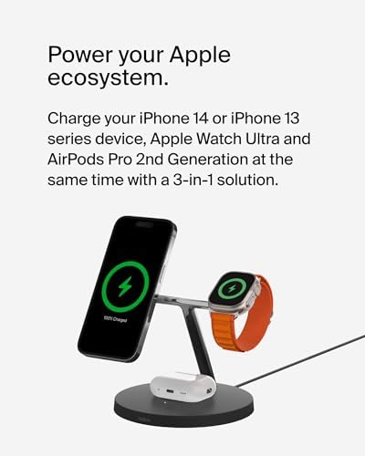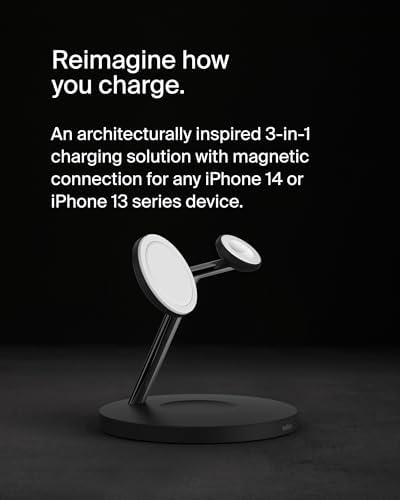 Belkin MagSafe Charger, 3-in-1 Wireless Charging Stand, 2ND GEN, 33% Faster for Apple Watch, iPhone 15, iPhone 14, iPhone 13 Series, AirPods - MagSafe Charging Station for Multiple Devices - BlackRecommendations