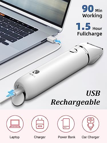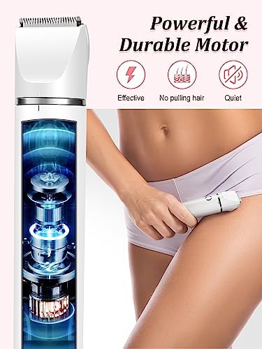 Bikini Trimmer and Shaver Kit for Women - 2-in-1 Wet/Dry Electric Body Hair Trimmer Facial Hair Removal Cordless Waterproof Bikini Shaver Razor for Face Lip Chin Pubic Underarm Legs (White)