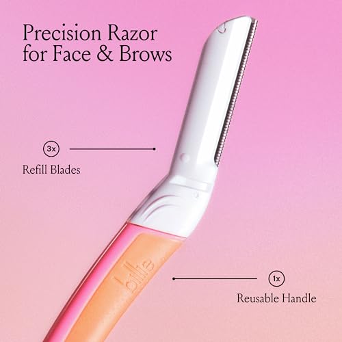 The Billie Dermaplane Starter Kit is perfect for removing peach fuzz and shaping brows with pinpoint precision. Each kit comes with a reusable handle and 3 stainless steel refill blades with protective micro-guards. The rubber handle is comfortable and easy to use with a slip-free grip so you can reach all the angles you need. Plus this dermaplane wand is designed to safely smooth skin and offer gentle exfoliation for a brighter, even-toned complexion. This helps skincare products and makeup glide on more seamlessly. Always prep by washing your hands and face. While we recommend dermaplaning on dry skin, you may add a thin layer of your favorite serum to help your wand glide while you remove peach fuzz. But don’t worry, there’s a step-by-step guide with reference photos included to help walk you through how to dermaplane for the best results. We recommend replacing your dermaplane blades about every 2 shaves. Dermatologist-approved for all skin types, including sensitive skin.