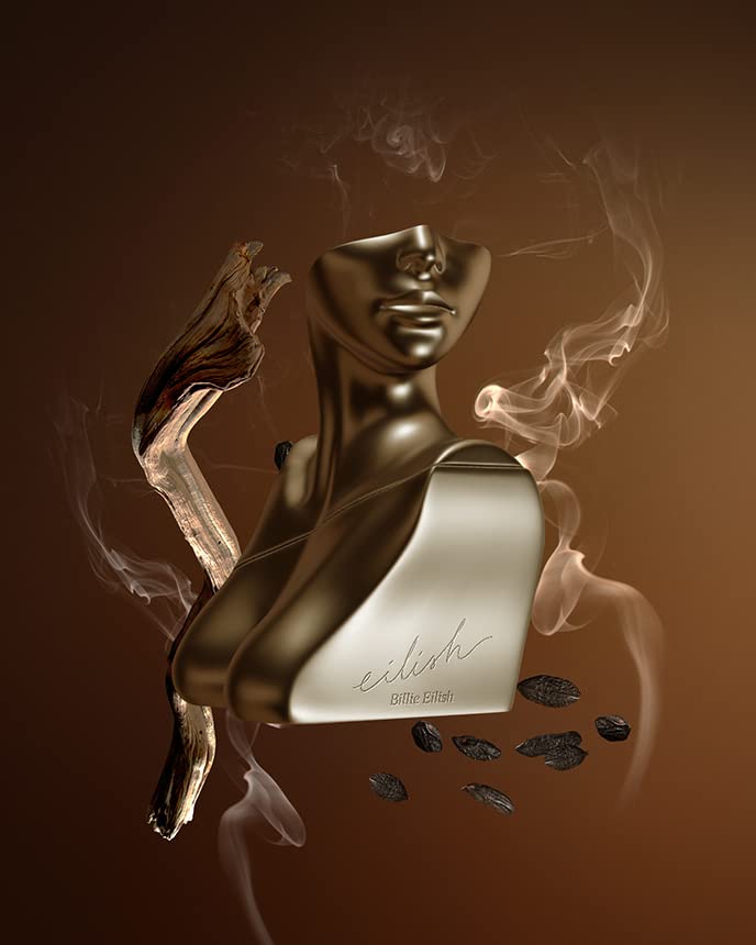 The bottle is inspired by Billie’s favorite parts of the body: the chest, neck, and collarbone, and is gilded in beautiful amber-bronze. It is a fusion of angles and soft curves, inspired by elements from classic sculptures and the human form.