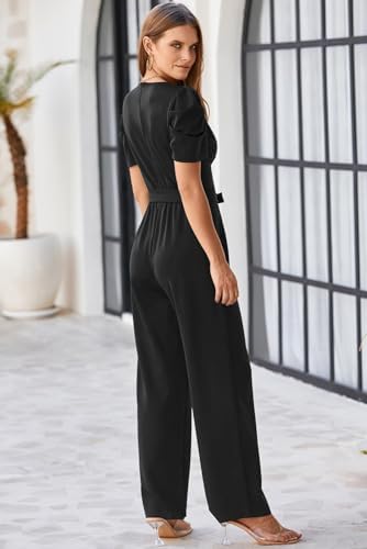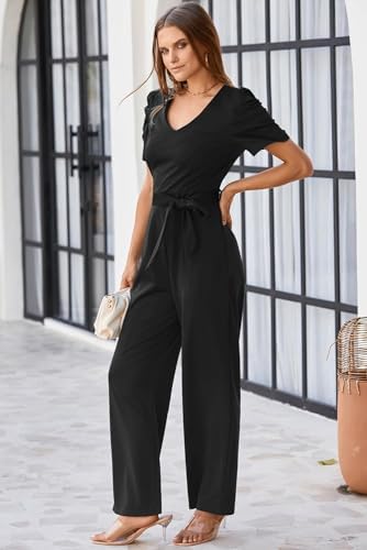 BLENCOT Jumpsuit for Women Short Sleeve Casual V Neck Wide Leg Formal Rompers