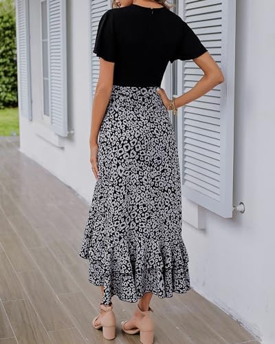 BTFBM Womens Short Sleeve Maxi Dresses Stitched Floral Empire Waist Casual Dress