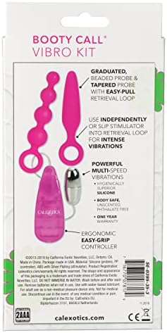 Whether you’re a bashful beginner or an exotic expert, CalExotic’s Booty Call Vibro Kit it here to help you explore your adventurous side! The pleasure beads offer a sturdy, flexible string to create arousing stimulation from tip to tail, incrementally increasing in size from teaser to pleaser. The sleek probe offers streamlined pleasure that comfortably slips inside for intense backdoor stimulation. With our probes gradual increase in size, smooth design and convenient finger loop, it is superb for everyone at any level of backdoor pleasure play. Each probe is equipped with a strong o-shaped retrieval ring to provide maximum safety and control for you or your partner. Use ring to easily manage insertion, stimulation and ensure safe, gentle removal. Pair the smooth probe or pleasure beads with the petite vibe bullet for the pleasure experience of a lifetime. When used in tandem, you can instantly enjoy intense vibrations throughout the pleasure beads for a carnal climactic experience. Or use individually for sensational all over stimulation. The compact sizes make this set ideal for on-to-go sexual adventures, simply slip the set into your purse or suitcase and free your frisky side wherever you go. Since 1994, CalExotics has been the world’s leading pleasure products manufacturer and is dedicated to being a consumer-friendly brand for men and women. We understand that to truly encourage sexual wellness, the intimate toy industry needs to create products that enhance pleasure in your everyday life and cultivate a happier and more satisfied you. CalExotics has taken the very limited intimate toy options from the past and created a world of pleasure products for men, women and couples. By revolutionizing the way we see intimate products, CalExotics has been able to help everyone find confidence in their sexuality and promote sexual self-awareness. At CalExotics, we want you to expect more. Expect more passion, expect more romance and always expect more fun.