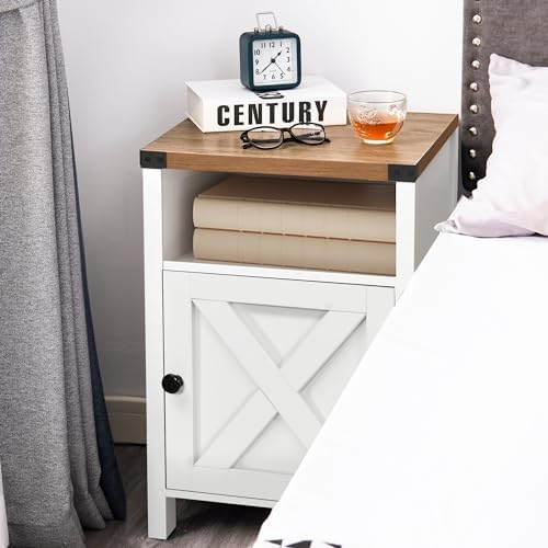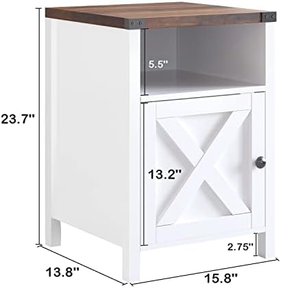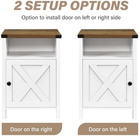 Farmhouse End Table Set of 2 Rustic Night Stand with Barn Door and Storage