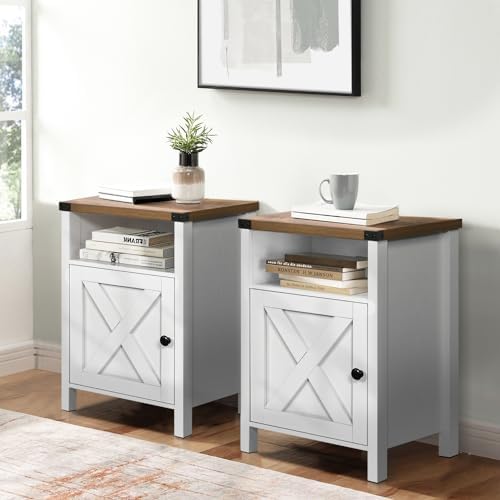 Farmhouse nightstand set of 2 have unique appearance in white adds a farmhouse style to your living room or bedroom.