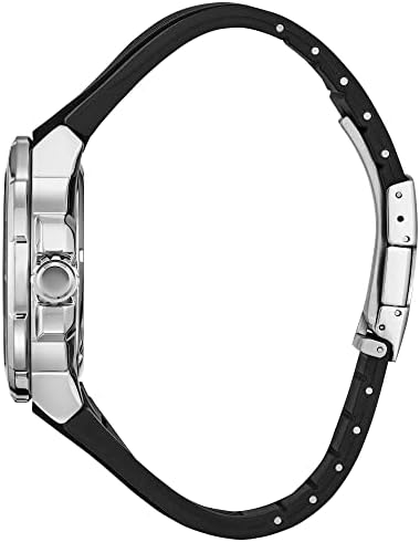 Venture into our sport luxury collection with the Endeavor timepiece for next level style and function. Features a silver-tone stainless steel case, a 3-hand black dial with luminous hands and markers, 8 hour power reserve and a bidirectional rotating bezel. This timepiece also features a fold-over clasp closure with a black polyurethane strap. For a men’s watch that makes a standout style statement, the Endeavor is the perfect choice. Featuring our Eco-Drive technology – sustainably powered by any light and never needs a battery. Water Resistant 200 meters.