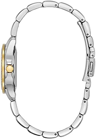 CITIZEN® Silhouette Crystal, fashionable and precise, creates an appeal unlike any other decorated with 48 crystals on the two-tone stainless steel case with stainless steel bracelet, silver dial and date feature. Featuring our Eco-Drive technology – powered by light, any light. Never needs a battery. Caliber number E011.