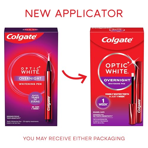 Whiten teeth while you sleep. In as little as a week (two weeks of treatment is recommended for best results), these Optic White teeth whitening pens whiten your teeth up to two shades and have 15X more whitening power in 1 treatment versus brushing alone, unlike other tooth whitening pens. The whitening pen pack includes one tooth whitener pen and one overnight stand for easy storage next to the sink or countertop. Gentle Whitening: We know teeth whitening sensitive teeth can be a pain. That's why our enamel safe tooth whitening gel formula has been designed for no sensitive teeth during and after the whitening process. Easy to Use: Click the back of the pen to dispense the unique formula to clean, dry teeth. The teeth stain remover formula dries quickly and whitens your teeth overnight. To remove, simply brush your teeth when you wake up to white teeth.