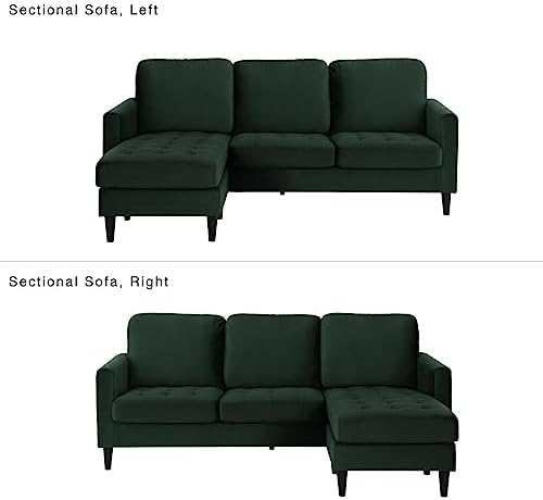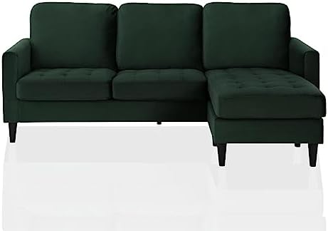 Glamify your sanctuary with the CosmoLiving Strummer Sectional Sofa. Covered in lush green velvet upholstery, the sofa is perched on sleek contrasting black wooden legs for durability. Here are the deets: the Strummer’s compact interchangeable design features a fab floating chaise that can be positioned on either side for full on versatility and comfort. With its narrow mailbox arms and modern tufting, this sectional gives us all the vintage glam vibes. Run, don’t walk to make our CosmoLiving Strummer Sectional Sofa the fiercest new addition to your space.