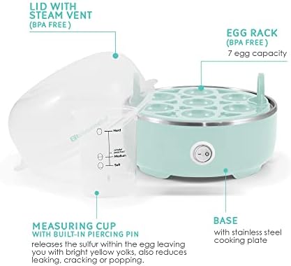 Elite Gourmet EGC115M Easy Egg Cooker Electric 7-Egg Capacity, Soft, Medium, Hard-Boiled Egg Cooker with Auto Shut-Off, Measuring Cup Included, BPA Free, Retro Mint