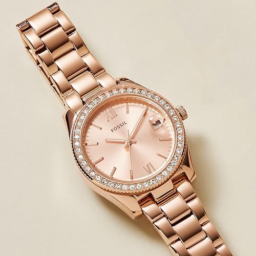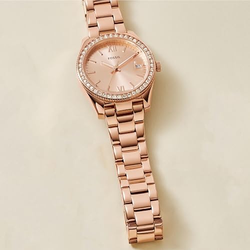 Fossil Women's Scarlette Mini Quartz Stainless Steel Three-Hand Watch, Color: Rose Gold Glitz (Model: ES4318)