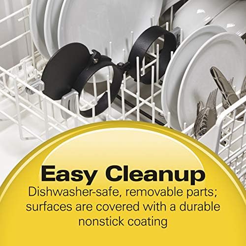 In just five minutes, your breakfast sandwich is ready to eat. Explore more than 25 sandwich recipes on our website, from the traditional egg, ham, and cheese to more unique options like cheddar, apple, bacon, and egg croissant sandwich. All removable parts are dishwasher safe; surfaces are covered with durable, nonstick coating.