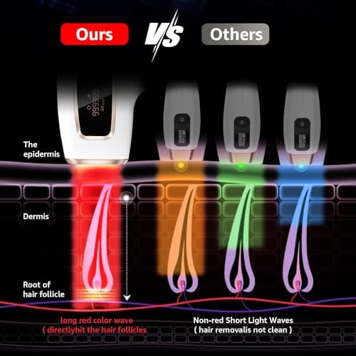 An Rodzon at-home IPL hair removal device that uses red color laser wavelength targets the melanin in the hair follicle.