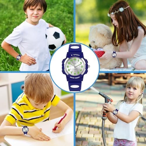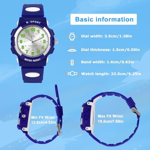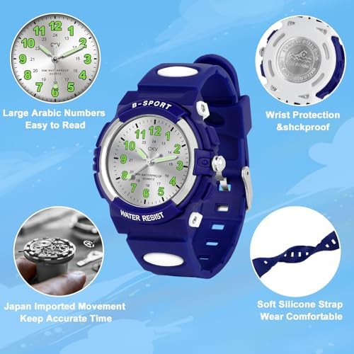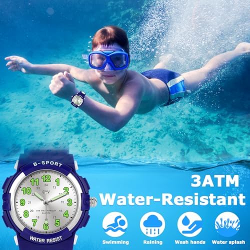 This boys analog watch is water resistant to 30 meters, which is sufficient for daily use, such as washing hands, splashing, getting wet, and swimming.