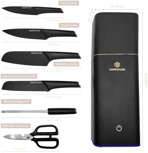 Knife Set Knife Sets for Kitchen with Block 6-Piece Stainless Steel Block Knife Set with Sharpener Kitchen Scissors Smart Knife Holder Keep Clean and Dry Kitchen Home Gift (Black)