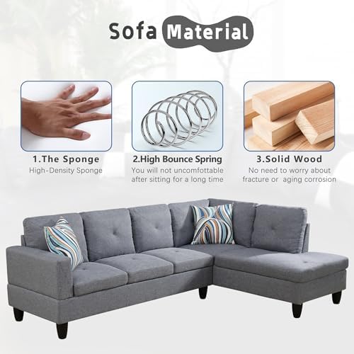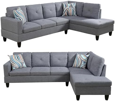 The SumKea sofa Indulge in luxury and comfort with our high-quality flannelette fabric. This sofa set provides a soft, smooth texture for a delightful seating experience, blending elegance with durability and practicality for daily use. Experience unmatched comfort with our plush, high-density foam cushions. They offer an ideal balance of softness and support, perfect for relaxation or hosting guests, ensuring your living space is a haven of comfort. Constructed for longevity, the sofa set boasts a robust frame for stability and long-term use, designed to withstand the demands of a busy household. It represents not just a piece of furniture, but a lasting investment in your home’s comfort and style. For convenience, the sofa set is easy to maintain, with simple-to-clean flannelette fabric. It’s delivered in woven bags, ensuring it arrives in perfect condition, ready to transform your living space into a stylish, comfortable abode. Overall Shape: L-Shaped Facing Chaise: Right Sofa Design: Stationary Arm Style: Square Arms Curved Corner: Yes Leg Color / Finish: Black Upholstery Material: Flannel Frame Material: Manufactured Wood Fill Material: Foam Back Fill Material: Foam Seat Construction: Pocket Spring; Sinuous Springs Cushion Construction: Foam Leg Material: Solid + Manufactured Wood Upholstery Grade: A Seating Capacity:5 Weight Capacity:800 lb Number of Pieces:2 Toss Pillows Included: Yes Number of Toss Pillows:2 Storage Space Included: No