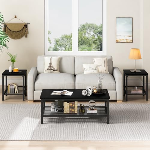 Brand Lamerge Product Dimensions 23.6"D x 41.3"W x 18.1"H Color Black Recommended Uses For Product Living room decoration, placing items like drinks, books, or decorative items Table design Coffee Table Style Rustic Finish Type Painted Base Type Leg Indoor/Outdoor Usage Indoor Model Name Coffee Table032 Included Components 1 x Coffee Table, 2 x End Table Furniture Finish Matte Black Size 41.3" Coffee Table Set Min. Required Door Width 46.88 Inches Leg Style Straight Leg Base Material Wood, Metal, Engineered Wood Extended Length 41.3 Inches Item Width 41.3 Inches Material Engineered Wood, Metal Number of Items 3 Number of Shelves 2 Specific Uses For Product living room, sofa, coffee table, bedside table, decorative purposes Base To Top Distance 18.1 Inches Top Color Rustic Brown Handle Material Metal Base Color Rustic Brown Includes All Assembly Tools Yes Tilting No Is Electric No Manufacturer Lamerge UPC 730851727039 Item Weight 50.7 pounds ASIN B0CPBDRNKG Item model number Coffee Table032 Customer Reviews