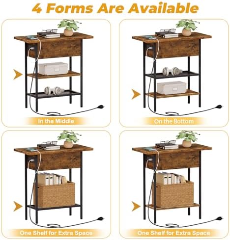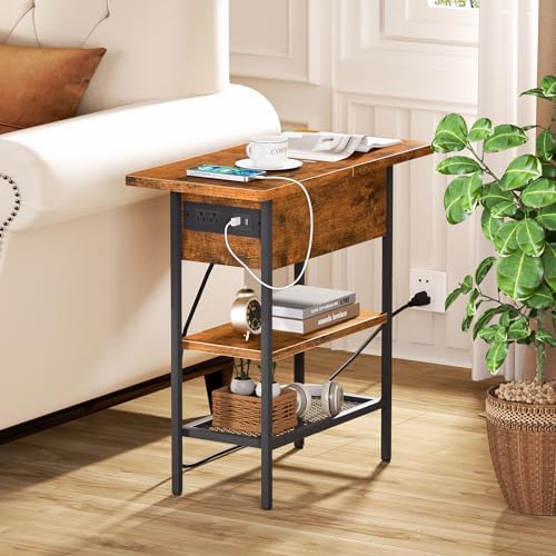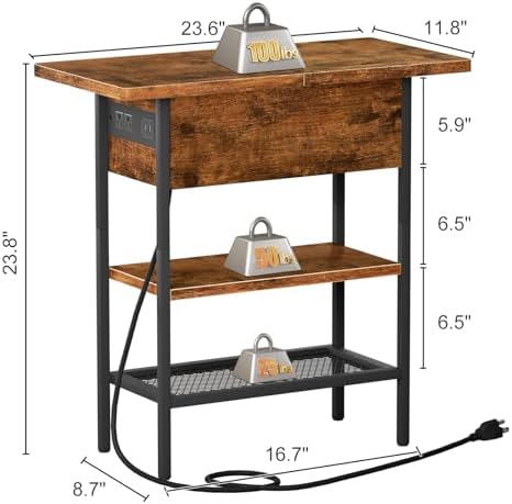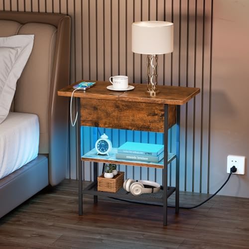 Siedihit Flip Top End Table with USB Ports and Outlets