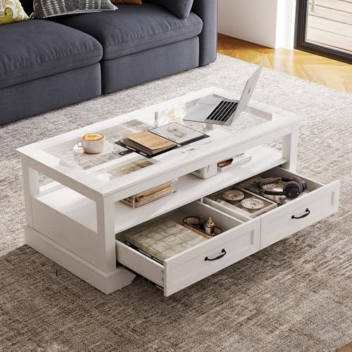 LINSY HOME Modern Coffee Table Sets 3 Pieces, Living Room Table Set Include 47" Coffee Table, End Table Set of 2, White