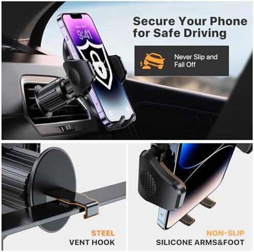 Miracase Phone Holders for Your Car with Newest Metal Hook Clip, Air Vent Cell Phone Car Mount, Universal Automobile Cradle Fit for iPhone Android and All Smartphones, Dark Black