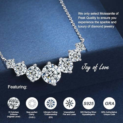 Brand, Seller, or Collection Name N9NEMUSES Material 18K White Gold Gem Type Moissanite Setting Prong Item Length 1.38 inches Chain Cable Clasp Spring Ring Number of stones 12 Stone Weight 5.00 carats Model number 9M-NC-MS-SMILE-5CT Certificate number Exclusive Certificate type GRA