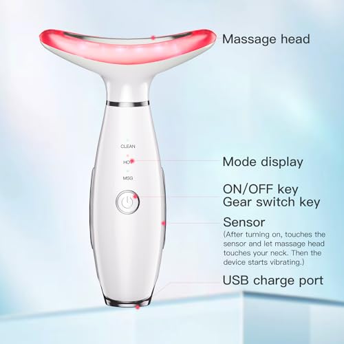Neck Face Beauty Device, Skin Care Face Massage,3 in 1 Facial Massager, Face Sculpting Tool with Thermals, Vibration (White)