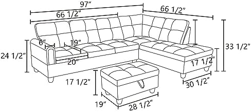 NicBex Couches for Living Room L Shaped Couch Upholstered Futon Sofa Comfy Linen Modular Sofa 3-Piece Sofa Set with Storage Ottoman for Apartments, Living Room and Office, Black Grey