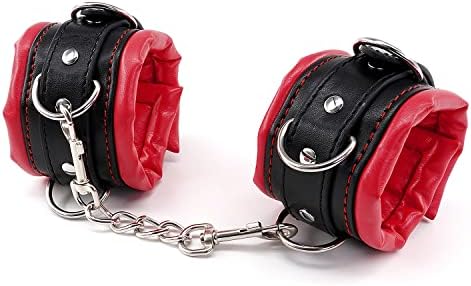 This bondage handcuffs and ankle cuffs set is made of faux leather, polyester and metals, padded design make the sex cuffs very soft and comfortable to wear. This leather sex toys is an excellent gift for lovers and couples.