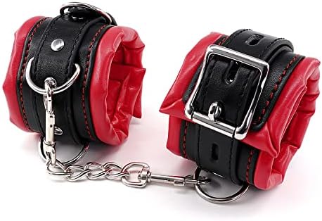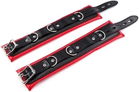 Padded Leather Bondage Handcuffs and Ankle Cuffs Set, Leather Sex Toys SM Wrist Cuffs for Bondage Restraints, Bondage Kit Sex Cuffs, Bondage Cuffs for Sex Games (Wrist & Ankle, Red/Black)