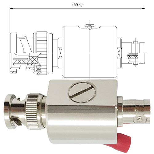 Lightning Arrestor BNC-Male to BNC-Female 50 Ohm 1.Materials & Plated: Body brass nickel plated,Teflon(PTFE) Insulator for a reliable signal every time Connectors: BNC-Male to BNC-Female RoHS compliant 2.Electricail Characteristics: Impedance:50 ohm Contact Resistance:Center conductor ≤ 1.5mΩ, Outer conductor ≤ 1mΩ Max Power:50W discharge current capacity(kA@8/20μS):10 Insulation Resistance :≥ 5000MΩ Durability :≥ 500 cycles Temperature range: -40°C to +85 °C Frequency Range up to 3 GHz Attenuation is less than 0.2 dB VSWR less than 1.2 3.Package include: 1 x Lightning Arrestor Surge Protector BNC-Male to BNC-Female 50 Ohm I4. Protects signal boosters from lightning strikes: Prevent a lightning strike from destroying your electrical system. The 50 ohm Lightning Surge Protector with BNC male to female Connectors can be installed to prevent expensive damage from incapacitating your circuitry. The Lightning Surge Protector safeguards your amplifier and boosted devices from power surges caused by lightning strikes to antennas mounted outside This lightning protector is specifically for 50 ohm systems. Lightning surge protector for cable. AWG 8/9/10 wire is suitable for grounding