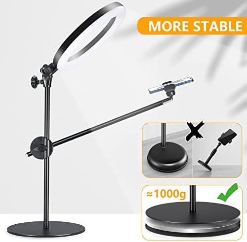 Selfie Ring Light with Stand and Phone Holder,Overhead Camera Mount with 10.5" Ring Lights for Phone, Circle Light with Desk Tripod Adjustable Shooting Arm for Video Recording,Live Streaming,Laptop