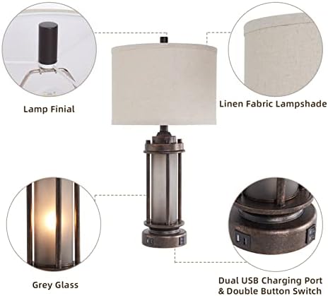 Set of 2 Farmhouse Lamps for Living Room, Rustic Vintage Bedroom Nightstand Table Lamp with 2 USB Charging Ports, Built-In Frosted Glass Night Light for End Table Entryway, 4 Bulbs Included (Bronze)Recommendations