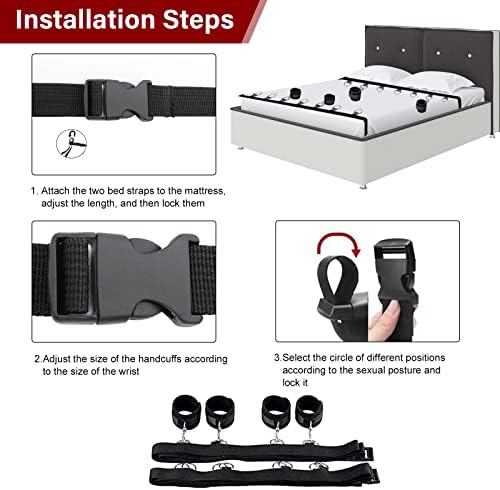 Sex Bondage BDSM Kit, Under King/Queen Bed Restraints Set with Adjustable Hand Cuffs Ankle Cuff, Sex Restraints Straps Adult Sex Toys Bondage Gear & Accessories for Couples Sex Play SM Games