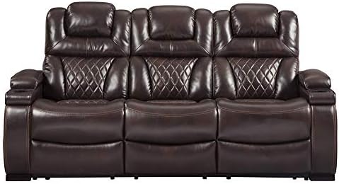 Signature Design by Ashley Warnerton Faux Leather Power Reclining Sofa with Adjustable Headrest, Brown