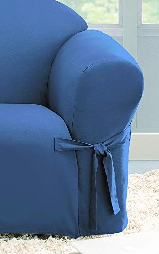 This ultra versatile cotton duck collection creates clean foundation that complements any decorating style. These crisp, pure cotton sofa slipcovers have relaxed, easy going fit. Made of 100-percent cotton. Machine wash separately in cold water, gentle cycle. Do not use bleach. Tumble dry low, remove promptly. Warm iron as needed. Available in bluestone color.