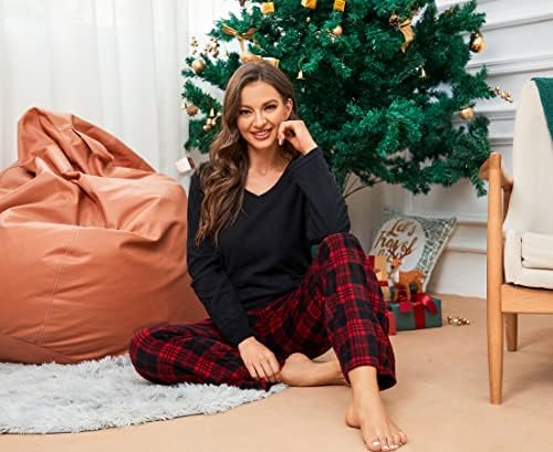 U2SKIIN Women Fleece Pajama Pants, Warm Plaid Lounge Pj Bottoms for Women with Pockets Soft