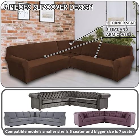 7 SEAT L SHAPE SOFA FIT: Our 3-piece, L shape recliner Sofa cover is made to fit perfect most L shape Sofas THAT THE CORNER SEAT CAN SEPARATE FROM THE REST OF THE SOFA as seen in picture 2, made with 3 separate pieces including 2 arm, seat and backrest of covers, and 1 corner seat cover, so it will snuggle and fit perfectly on your 7 seat L shape sofa. Please refer to the measurement guide in the photo, please measure before purchasing, If your Corner seat cannot separate from the rest of the sofa don’t buy this cover it won’t work. HIGH QUALITY MATERIAL: WE HAVE A PATENT ON THIS ITEM, this innovated PATENTED 3-piece L Shape reclining sofa cover is crafted from luxurious velvet plush fabric, and is very soft, comfortable and sturdy ULTIMATE DECORS sofa covers are as close to custom, made for a 7 seat L shape sofa that the corner seat is a separate part as seen in picture 2. NON-SLIP SOFA COVER: Made with elastic rubbers around the edges to keep it tight on the sofa and to keep it the sturdiest on the sofa and not needing to adjust after sitting on sofa. SOFA PROTECTOR - This beautiful velvet sofa cover will make your L Shape reclining sofa look brand new Covering stains and imperfections from everyday living and will protect from future daily wear and stains, saving you money by extending the life time of your L Shape reclining sofa and update your old L Shape reclining sofa to the color you want. EASY TO INSTALL: Check the installation guide carefully, it can be finished within 12 minutes by one person easily EASY CARE: Machine washable for easy care and maintenance, Wash in cold water on a gentle cycle with mid laundry detergent, do not use bleach, Iron on a low heat.