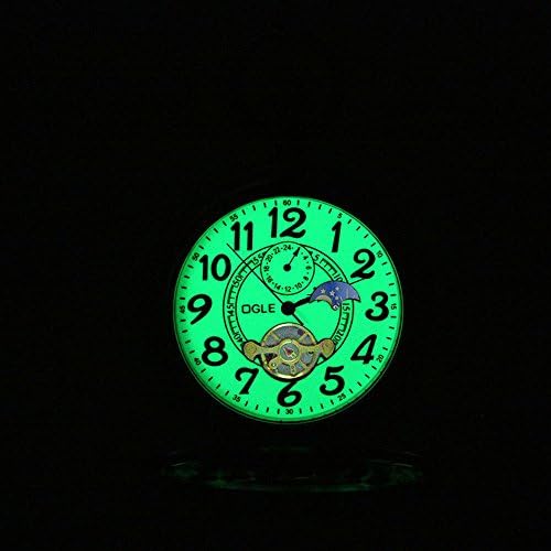 Brand, Seller, or Collection Name OGLE Model number 4331782759 Part Number OFS-YX-001-S-YG Item Shape Round Dial window material type Copper Display Type Analog Clasp Flip Clasp Case material Alloy Case diameter 48 millimeters Case Thickness 16.00 Band Material Metal Band width 10 millimeters Band Color Silver Dial color Green Bezel material Stainless Steel Bezel function 12 Hour Time Display Calendar No Calendar Special features Luminous Movement Automatic Water resistant depth 30 Meters Product Warranty For warranty information about this product, please click here