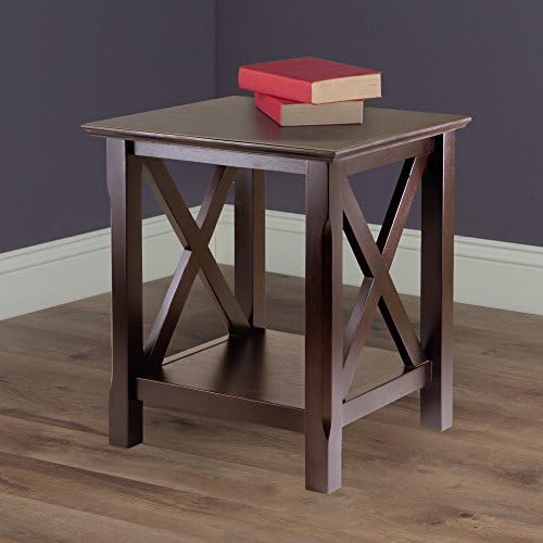 The Xola Accent Table by Winsome will look right at home next to the sofa, a lounge chair, or on either side of the bed. The "X" design side panels give the table stability and style, while the chamfered legs add a special touch. Finished in a rich Cappuccino, the accent table is a seamless blend with any decor, from transitional to contemporary. Ithas a lower shelf with ample 15"H clearance, excellent for coffee table books, magazines, or displaying collectibles. Beveled edges on the smooth tabletop complete the polished feel of this piece. Team it up with Winsome's Xola Coffee Table or Xola Console to round out your home furnishings.