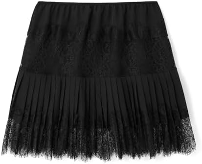 Women Y2K Black White Lace Mini Skirt Low Rise Half Slip Underskirt Ruffle Pleated Layered Flowy Short Skirts