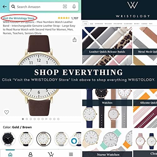 The Olivia mini numbers nurse watch by WRISTOLOGY is made for nurses, doctors, medical professionals, teachers or anyone who needs a fashionable way to keep time at a quick glance. It comes in 2 sizes and multiple colors and finishes so you can build your own style. Buy extra bands to easily swap out in seconds for a new look with every outfit. - Large easy reader watch dial- Contrasting second hand for easy timing - 16mm Interchangeable leather, silicone or metal watch band (fits up to 8.5” wrist, adjustable)- Change bands in seconds with no tools- Hand-crafted Japanese analog quartz watch movement- Width of case: 36mm - Thickness of case: 8mm- Our US based service team is here to help!About WRISTOLOGY:On-trend style isn’t a members-only perk. That’s why we offer must-have pieces at a great value. More options. More outfits. More ways to be yourself! We're a small women owned business on a misson to create the most beautiful and affordable womens watches. We're passionate about serving our customers to please let us know if we can help.