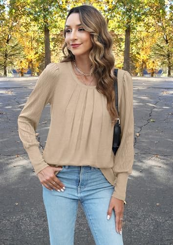 XIEERDUO Women's Fall Long Sleeve Shirts Dressy Pleated Front Tops Loose Fit