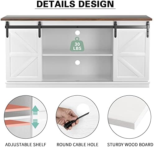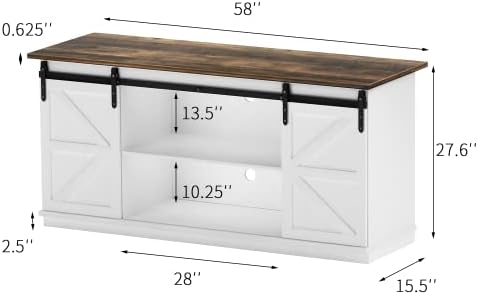 YESHOMY TV Stand Feature: TV stand is 27.6” H x 15.5” D x 58” L for TVs up to 65 Inches Two sliding doors can slide on metal rails to hide the storage cabinet Large storage space can hold more items, freeing up space in your living room Various styles to decorate your room, Create a comfortable home environment Drilling design which allows your electronic equipment power supplies to be easily Specification: Color: White Material: Metal, wood, etc. Package Dimensions:63"(L) x 18.25"(W) x 6.25"(H) Package Weight: 81.3 lbs Package includes: A tool kit A tv stand A manual of installation and usage Notice: There may be some differences between photos and items in term of color because the influence of lighting during the shooting or the settings of the computers’ display screen.
